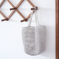 かぎ針編みで作る、ちょっとレーシーで小ぶりな巾着型ショルダーバッグです。